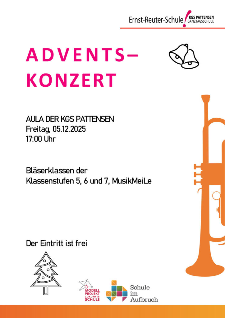 Am Freitag, 05. Dezember 2025, dem Vorabend zum Nikolaustag findet um 17:00 Uhr das alljährliche Adventskonzert zum ersten Mal in der AULA der KGS Pattensen statt.