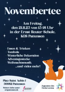 Am Freitag, dem 21.11. findet der diesjährige Novembertee statt.